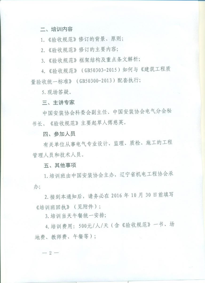 关于举办《建筑电气工程施工质量验收规范》(GB50303-2015)宣贯班的通知